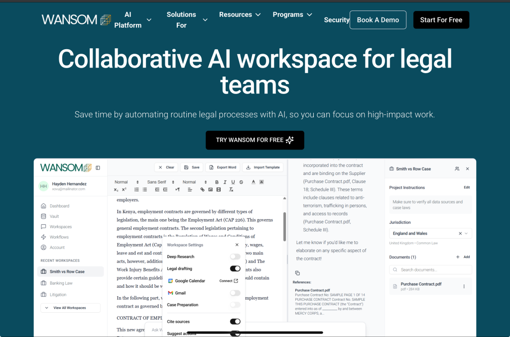 Wansom AI is a collaborative AI workspace for legal teams (LegalTech, Kenya)