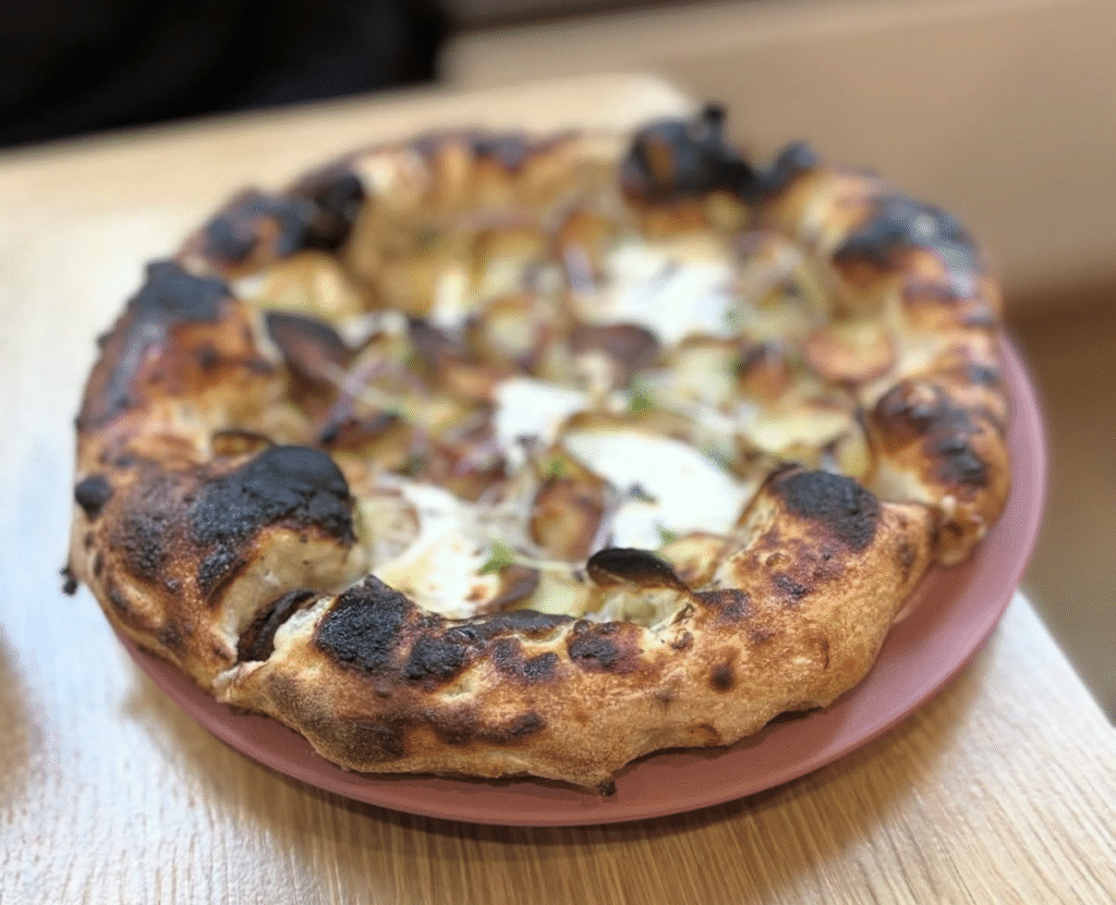 - Pizza Bianca with goat cheese béchamel, zucchini, and melted leek ($28)