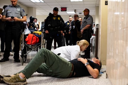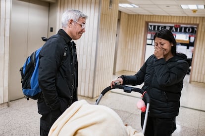 However, there was no sign of the family in the lobby. Nor on the ninth floor, at the ICE office, where the volunteers went in search of answers. For hours, no one knew what had happened to the family that EL PAÍS had witnessed being detained. “It’s a missing family,” said Father Fabián Arias, incredulous, a man who has spent 20 years going to New York immigration courts to accompany asylum seekers.
