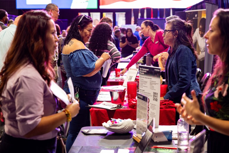 Dozens of recruiters met with jobseekers Thursday at Port San Antonio and Workforce Solutions Alamo’s job fair. Credit: Amber Esparza / San Antonio Report