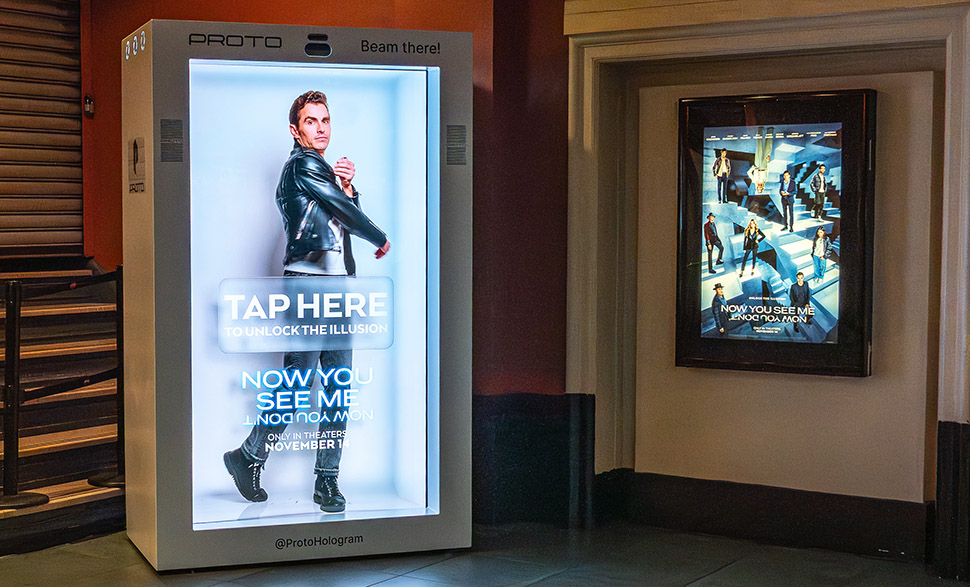Using technology by Proto Hologram, the movie’s distributor, Lionsgate, will “magically” bring the illusionist characters played by actors Jesse Eisenberg, Isla Fisher, Dave Franco, Justice Smith, and Ariana Greenblatt, into theaters for the first time.
