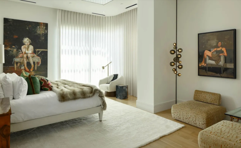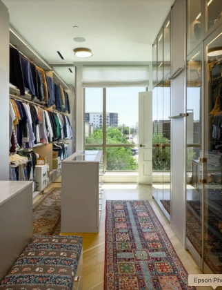Because this is a double unit, there is a south-facing balcony and an extended west-facing balcony. The floor-to-ceiling windows are tinted with UV protection for your art collection, with Crestron-controlled window shades. Yes, it’s all that and more, and I’d be negotiating for the furniture!
