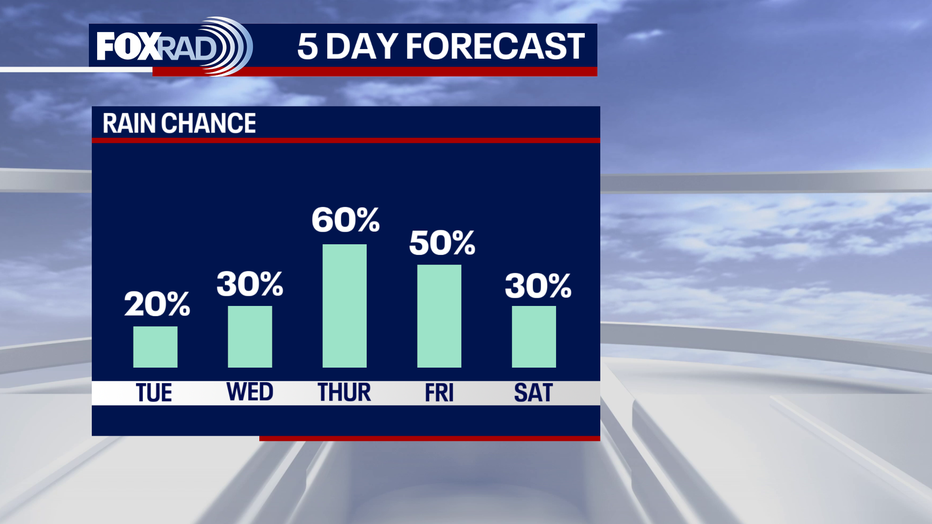 By Wednesday, rain chances increase with daily rain chances lasting until Saturday. Our longer-term forecast models are showing potential for above average precipitation than what we typically see this time of year.