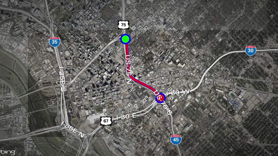 I-345 is a 2.8-mile stretch of interstate on the east-side of Downtown Dallas that connects Highway 75 to Interstate 30.
