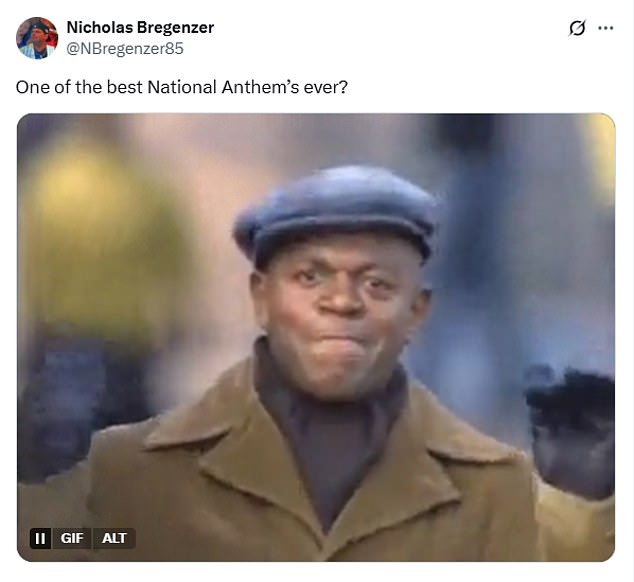 ‘One of the best National Anthem’s ever?’ one account questioned, as one stated: ‘War and Treaty just delivered the best National Anthem I’ve heard in a long time #MNF.’