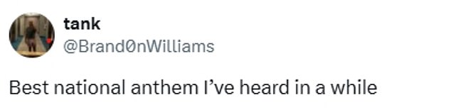 A third fan agreed, posting: ‘The War and Treaty absolutely CRUSHED that National Anthem! May have been one of the BEST I’ve ever heard!’
