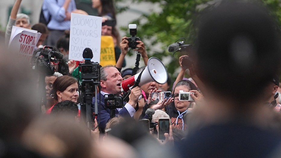 NEW YORK, UNITED STATES – JUNE 17: New York City mayoral candidate and city comptroller Brad Lander who was arrested outside a federal immigration courtroom by Immigration and Customs Enforcement (ICE) officers on June 17, 2025, talks to his pro-immi