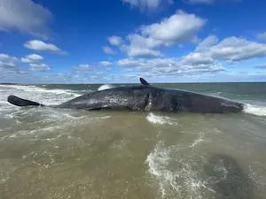 The whale has been anchored to the shoreline to prevent it from drifting away, allowing experts to conduct a thorough examination, officials said.