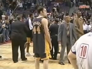 I rewatched it last night when I saw the anniversary was today, and two things stood out. First, there’s a point deep into the fracas when Austin Croshere is just standing on the court, almost looking catatonic as he takes in a scene nobody would have believed.