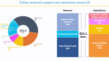 According to the University of California Office of the President, student tuition and fees make up about 40% of its annual revenue of $11.1 billion.