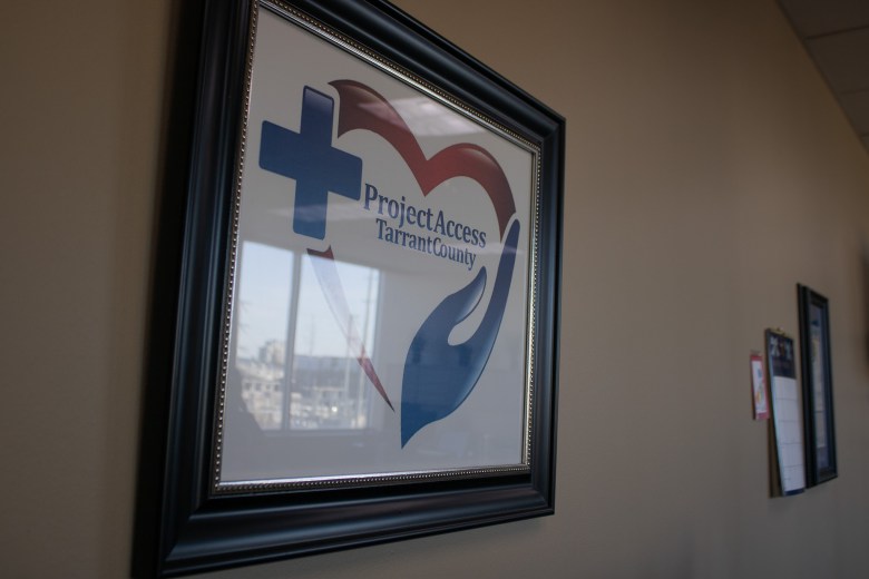 A sign sits in the Project Access Tarrant County office on Nov. 6, 2025. (Ismael M. Belkoura | Fort Worth Report)