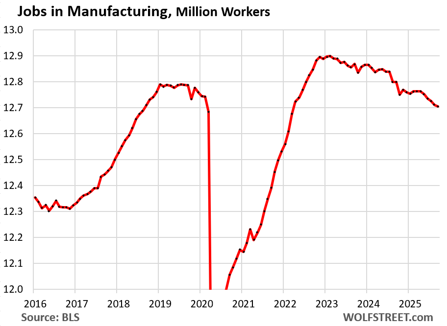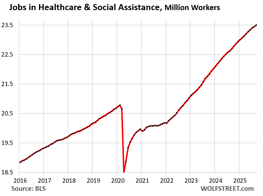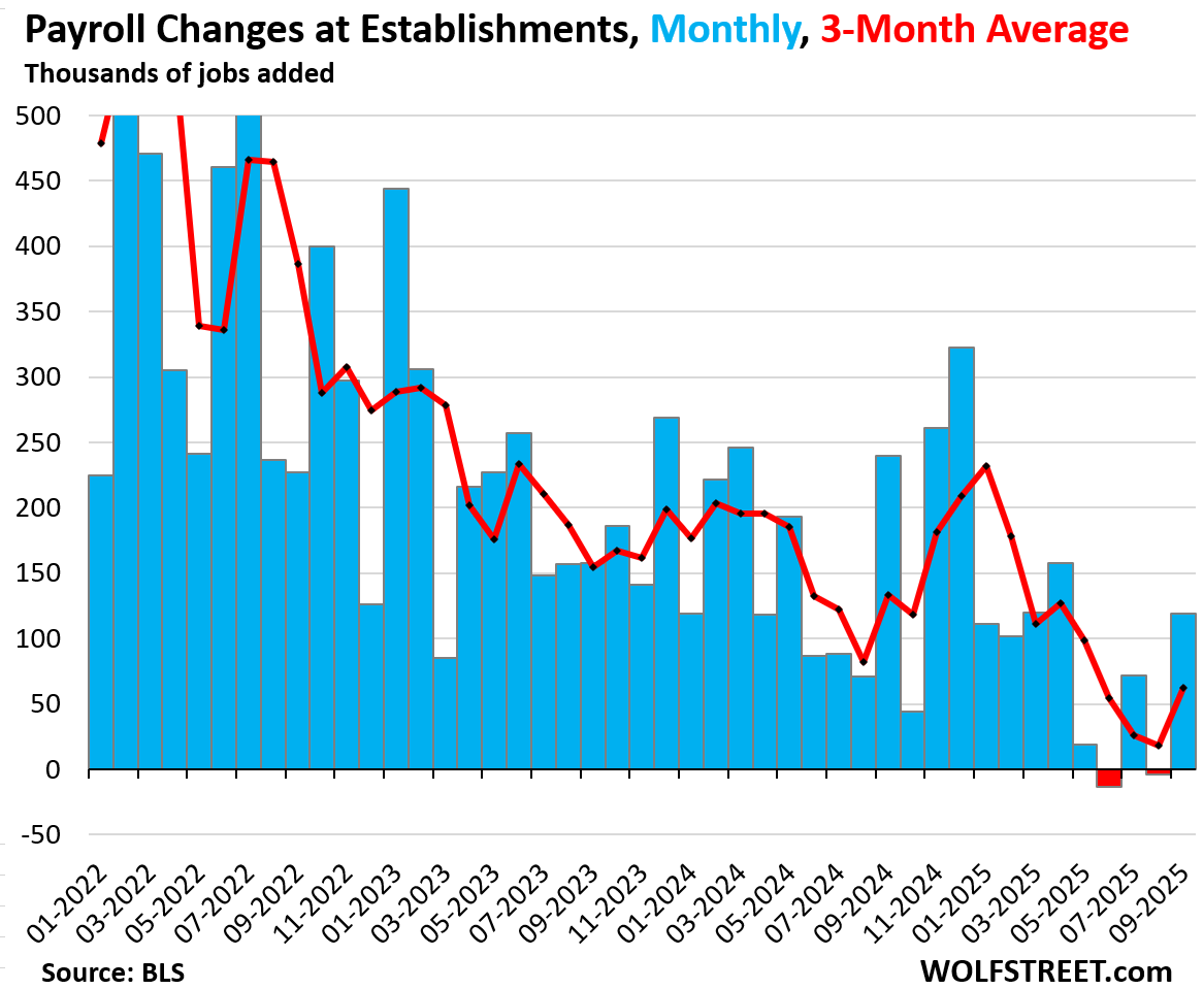 The government shutdown in October didn’t impact the data collection for this September report – it only delayed it. But it killed the October report. October figures will be included in the November report, according to the BLS, which also explained today: