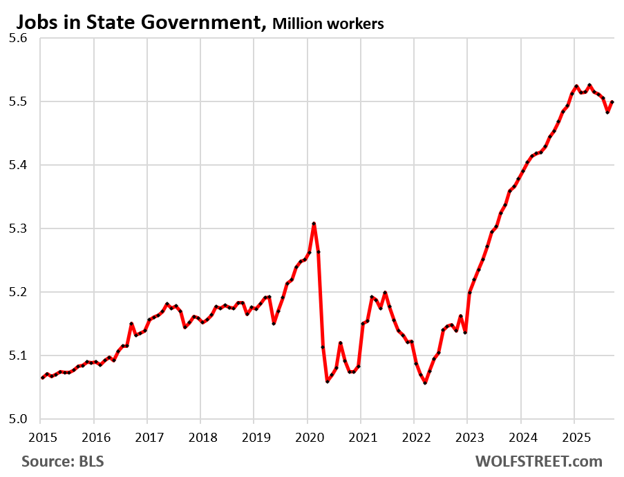 State governments have shed 25,000 employees since January, including September’s increase of 16,000 (through August, they had shed 41,000 employees).