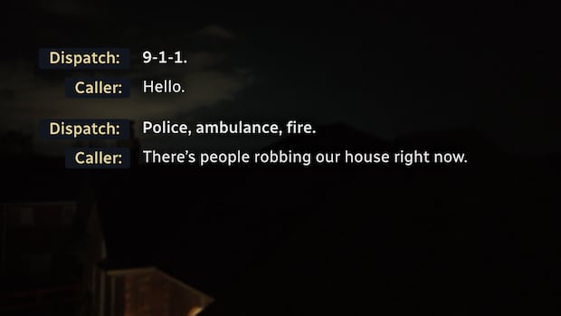 “There’s people robbing our house right now … they have guns and they took the car keys, please,” an anxious voice pleaded to a 911 dispatcher as her sister’s screams in the background drowned out her voice.