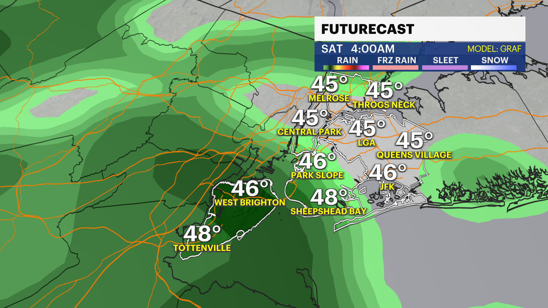 OVERNIGHT: Lows in the low 40s. Rain arrives late.
