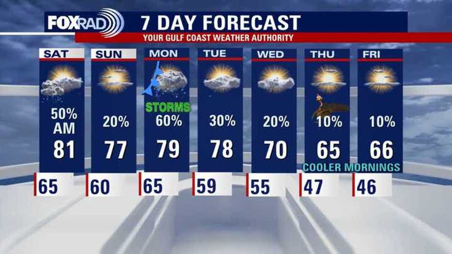Sunday should be comfortable with a mix of clouds and sun and slightly cooler temps.