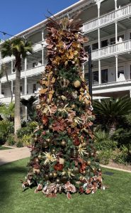 It’s fascinating to get a peek at how they create holiday magic at The Del, resplendent with 37 trees, 16 of which are fully decorated and 11 embracing this year’s Holiday in Oz theme. And although the outdoor building lights start going up in September and the light show preparation begins in late October, the tree decorating is completed in a week by Epic Entertainment Group. The creative mastermind is Co-founder and Managing Partner Charity Hill, who grew up visiting The Del and helps correlate themes to aspects of The Del’s history.