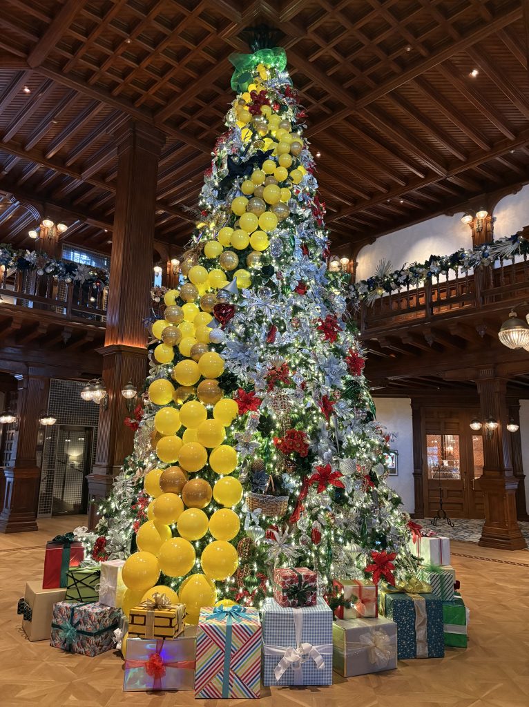 It’s fascinating to get a peek at how they create holiday magic at The Del, resplendent with 37 trees, 16 of which are fully decorated and 11 embracing this year’s Holiday in Oz theme. And although the outdoor building lights start going up in September and the light show preparation begins in late October, the tree decorating is completed in a week by Epic Entertainment Group. The creative mastermind is Co-founder and Managing Partner Charity Hill, who grew up visiting The Del and helps correlate themes to aspects of The Del’s history.