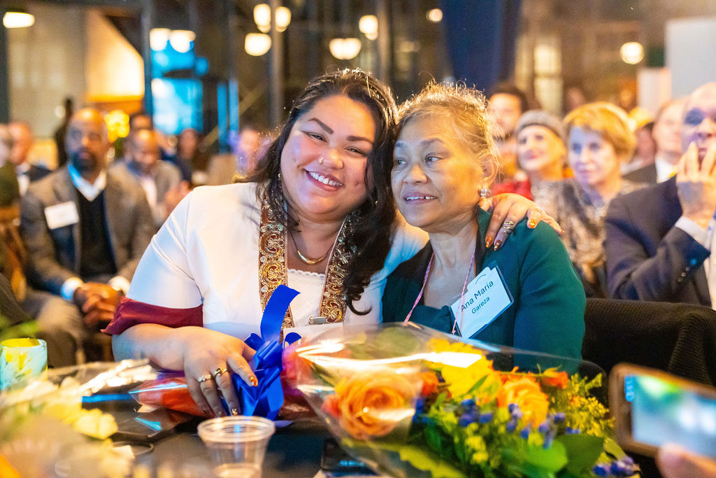 Honoree Maria Paula Gareza Degillo hugs her mother, the first person to ever immigrate to the United States from her village in the Phillipines