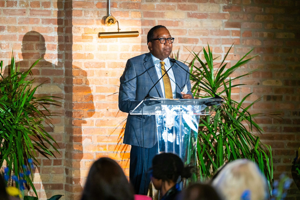 2025 Awards Co-Chair Bryan Stoke II, Director of Education Portfolio at the Robert R. McCormick Foundation, welcomes and thanks guests