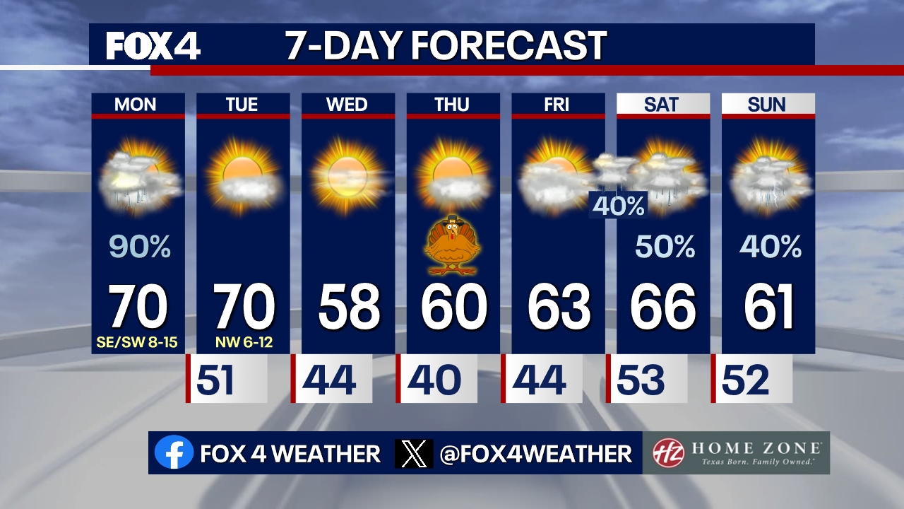By noon, the heaviest weather is expected to shift east and southeast, allowing parts of the Metroplex to begin drying out. The late afternoon and evening hours will see pleasant weather with no additional rain.