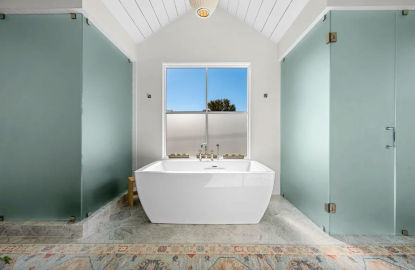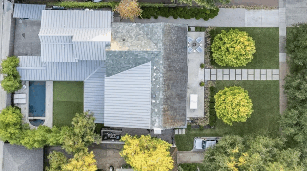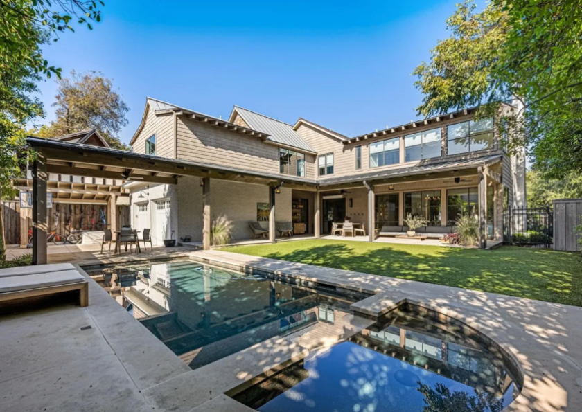 “They were starting a family and wanted an open kitchen living area, which the original architecture did not have, of course,” Hoesterey said. “They also wanted a primary suite and a garage, which we added to the back of the house to avoid competing with the strong symmetry of the facade. That gave us an L-shaped space that allowed for a great outdoor area.”