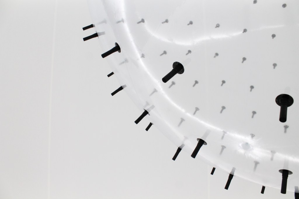 Just beyond “Mariposa,” there is another interactive exhibit that serves as a canvas, where each guest can participate in creating a unique art piece. Karina Smigla-Bobinski’s “ADA” could not be more visually different from its predecessor. From a dark room lit only by the LED butterfly wings, guests step into a blindingly white, boxed-in room containing a massive balloon spiked with charcoal. As the balloon floats around the room and is encouraged in new directions by guests, the balloon leaves unique marks on the white floor, walls and ceiling. Once the exhibition is closed, a unique piece of art will be created to serve as a representation of everyone who interacted with “ADA” in Dallas.