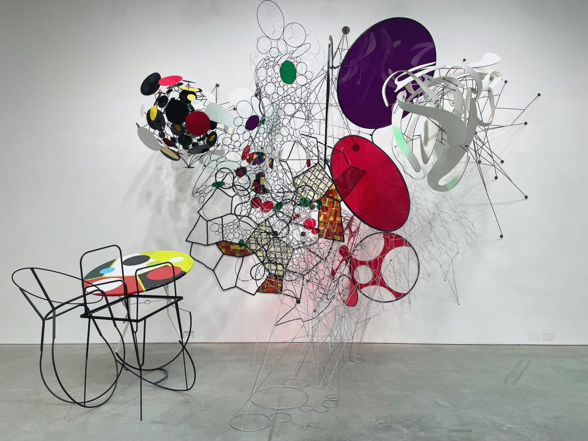 Judy Pfaff, “Es Possible” (1989), painted wiggle board and steel (photo courtesy Art Cake)