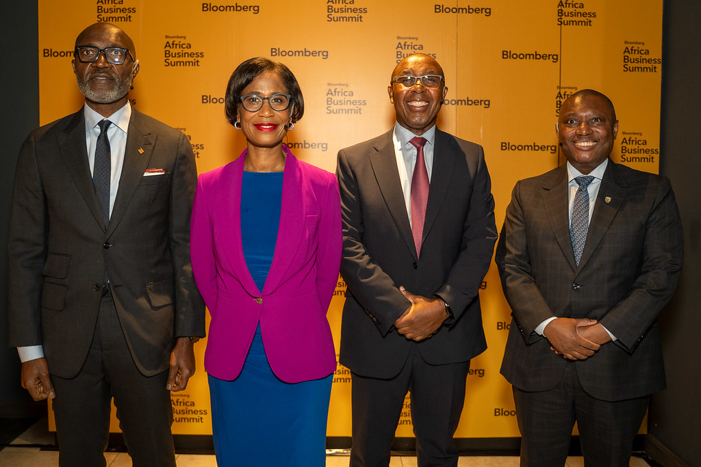 L-R: Roosevelt Ogbonna, managing Director/CEO Access Bank Plc; Jacqueline Simmons, senior executive editor, EMEA, Bloomberg; Kenny Fihla, Group CEO of Absa Group; and Sim Tshabalala, Group CEO, Standard Chartered at the Bloomberg Africa Business Summit held in Johannesburg recently.