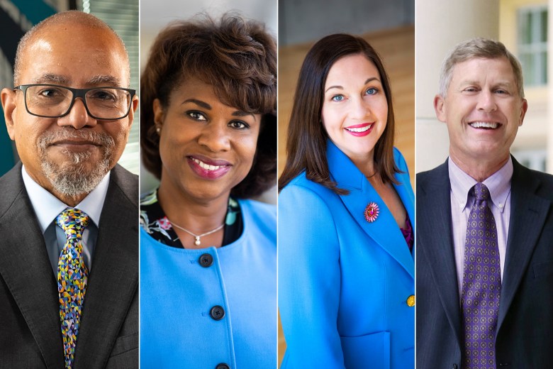 From left to right: Dr. Kirk Calhoun, Dr. Tricia C. Elliott, Elyse Stolz Dickerson and Dr. Stuart D. Flynn will be the panelists at the Fort Worth Report’s Candid Conversation event on Dec. 2. (Photo collage created by Maria Crane | Fort Worth Report/CatchLight Local/Report for America)