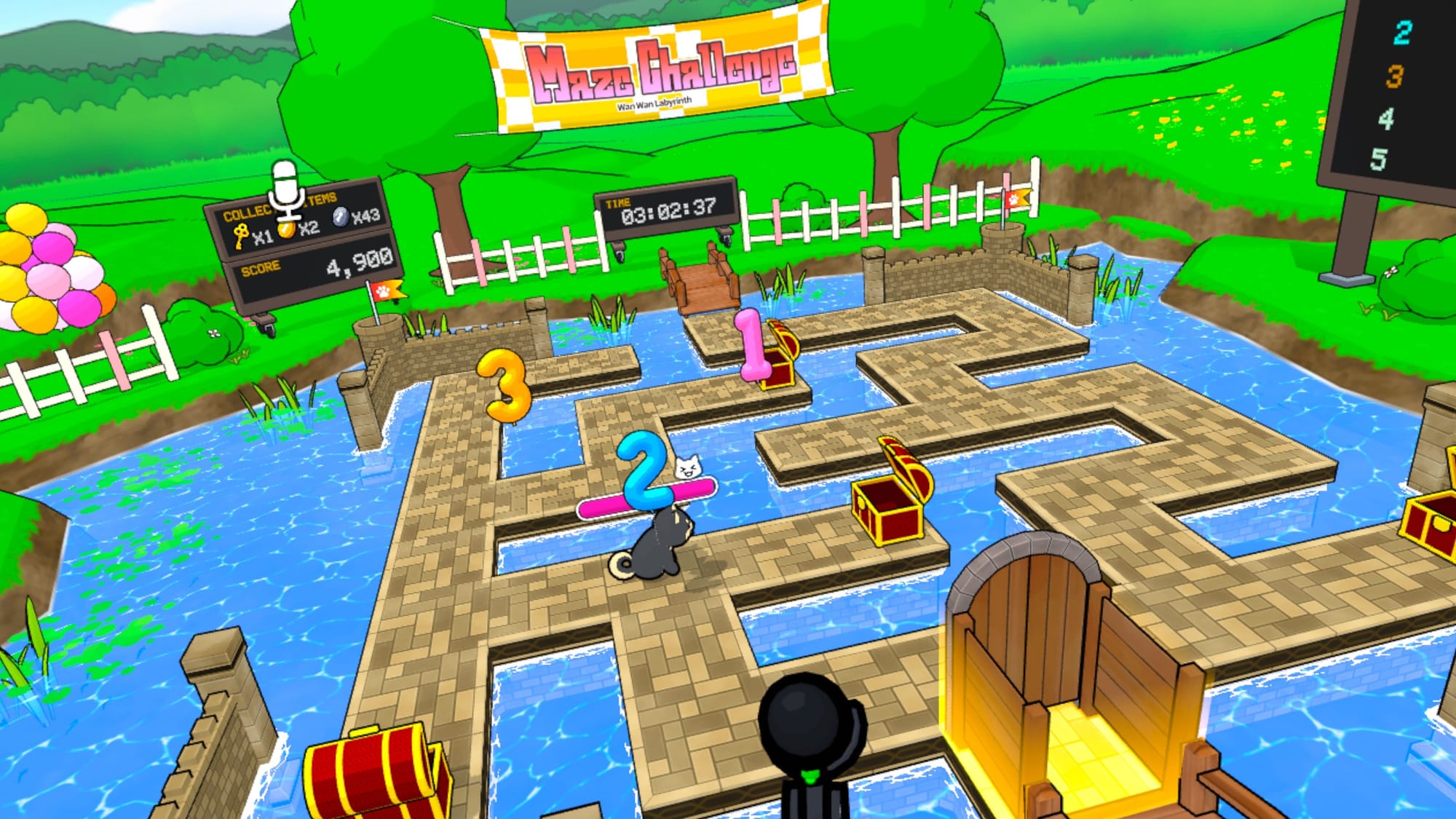 With dogs being more active creatures than the aloof and independent feline, Inu Atsume VR offers a few features not found in its predecessor for interacting with your dog. You can take them to events – simplistic minigames such as maze navigation offer a break from the more passive experience found elsewhere. In this maze game, for example, you can navigate your dog through simplistic labyrinths using either a navigation panel in front of you or voice commands. Unfortunately, voice recognition is very poor and rarely works. Attempting to call and have my dog respond is neat, yet I found myself going to menus and buttons both in and out of minigames. It’s only worked for me around 10% of the time during my experience with the title.