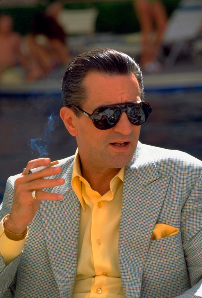 The real Rosenthal was a spindly, ice-eyed blond from the west side. He worked as a clerk and bookie for Chicago gamblers before he could vote and played the odds in the bleachers of Wrigley and Comiskey. After developing a nationwide network of tipsters and a reputation to match, he escaped to Miami and then Vegas. He ran four casinos for the Outfit by the mid-70s. Although De Niro looks nothing like Rosenthal, his commitment to playing the part convinced Rosenthal to contribute to the book and movie.