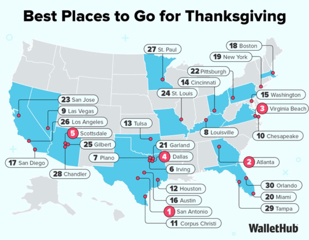 WalletHub says the metrics for this year’s ranking include factors like affordability, celebrations and traditions, safety and accessibility, giving thanks and weather forecast.