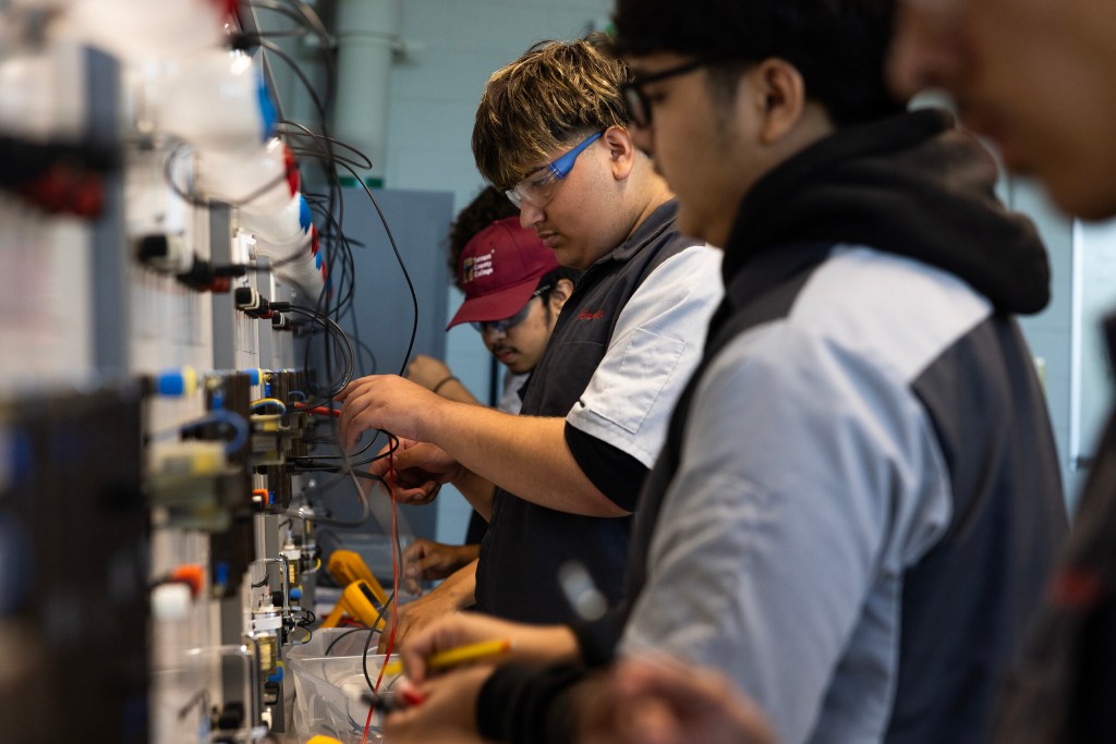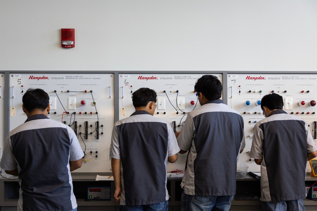 They watched instructor T.J. Felgar snatch the wires protruding from a nearby electrical board, rearrange them and pick up black and red cables hanging from a multimeter to test the voltage. Felgar flipped a switch.