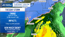 A winter storm will bring snow and a wintry mix of rain on Tuesday, beginning at around 3 a.m. and lasting throughout most of the day.
