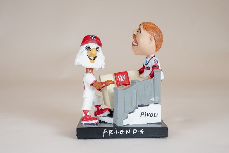 For $94.60, Astros fans could buy a premium ticket that included a pregame hangout on the Central Perk couch, and for $53.22 more, they could go home with a bobblehead of Houston’s mascot, Orbit, who was getting an early start on Thanksgiving. The Nats’ first “Friends” night came with a bobble that had mascots Screech and Teddy reenacting the show’s iconic “PIVOT!” scene.