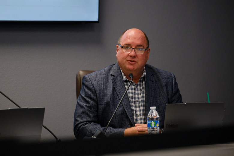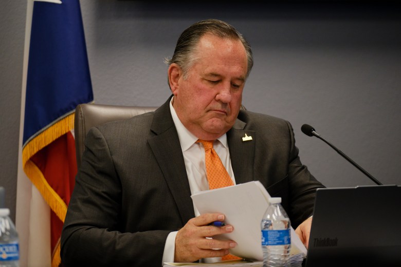 Rick Barnes, Tarrant Appraisal District board chairman and tax assessor, looks at papers during a board of directors meeting on Nov. 10, 2025. (Drew Shaw | Fort Worth Report)