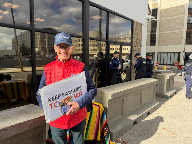 Jerry Zurek of Haverford participated in a protest outside the ICE office on 8th Street in Center City. Nov. 11, 2025. (Meir Rinde/Billy Penn)