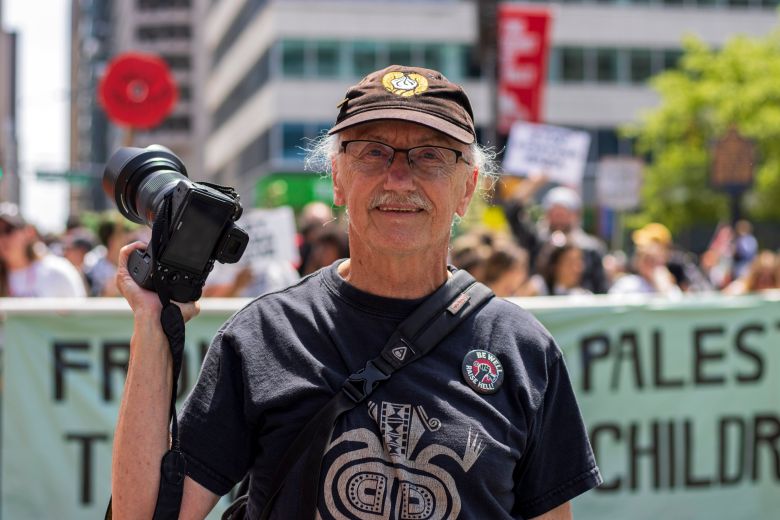 Political activist and photographer Joe Piette attended a protest march in Philadelphia on May 11, 2025. (Conner McHugh)