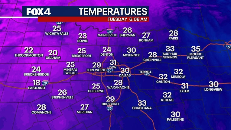 A true blast of winter is felt in DFW Tuesday morning, with a taste of fall expected by the afternoon.