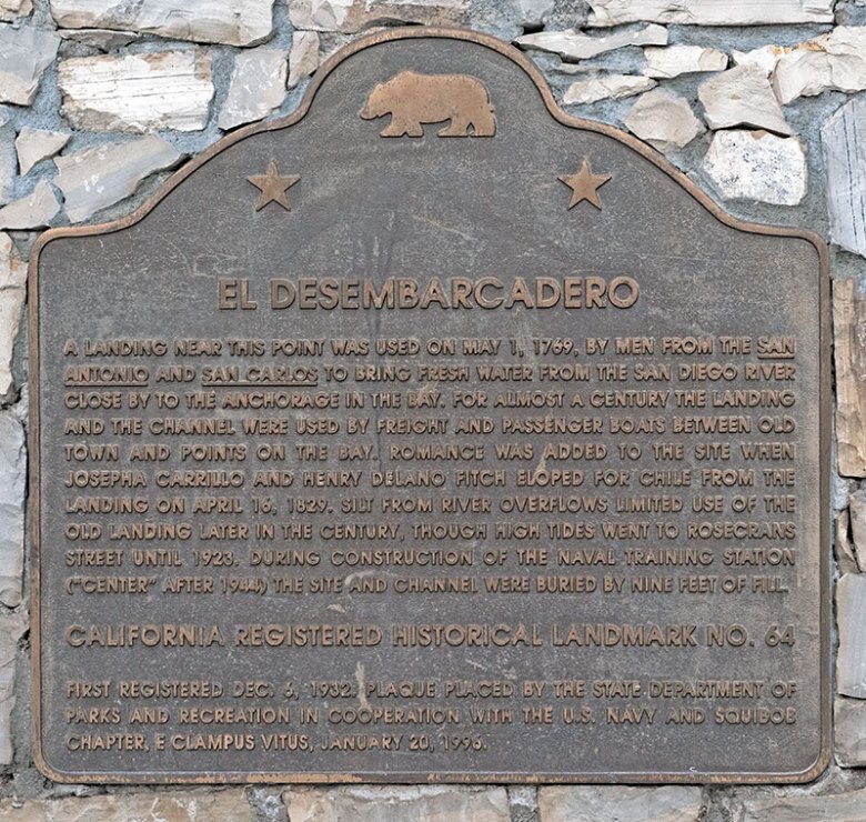 El Desembarcadero, the landing site where Spanish ships first arrived in 1769, also received official recognition. Though the shoreline has shifted over the centuries, a marker on Point Loma commemorates this early point of access to San Diego Bay, a vital gateway for trade, settlement, and exploration.