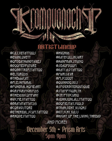 The celebration begins at Houndstooth Tattoo (1022 Buttonwood St.) from 12 PM to 8 PM, where artists will offer Krampus-inspired flash tattoos for anyone looking to ink their love of folklore, winter monsters, or the darker side of December tradition.