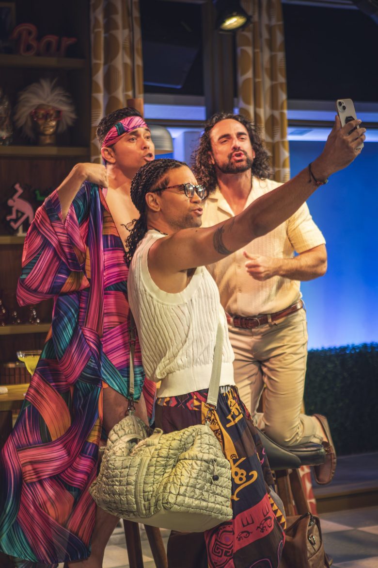 Three friends descend on Palm Springs for a reunion trip with margaritas, dance numbers and hookups. From left to right, Wilfred Paloma, Zack King and Wil Bethmann. (Photo by Xing Photo Studio/Diversionary)