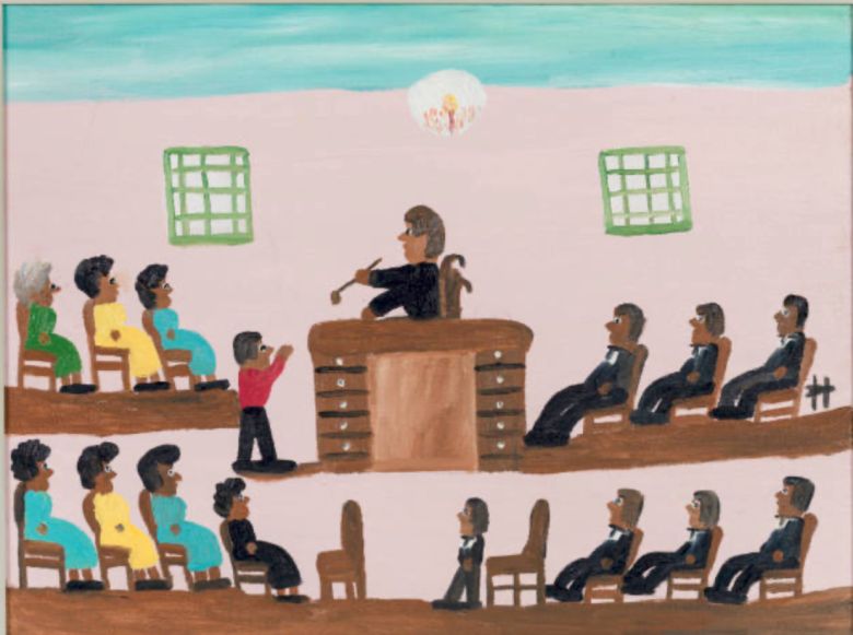 Artist: Clementine Hunter, Title: Untitled (Courtroom). Courtesy of American Folk Art Museum