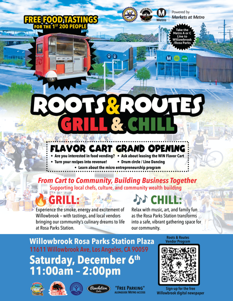 Willowbrook is turning up the flavor this December with Roots & Routes: Grill & Chill, a free community celebration hosted by Markets at Metro and the Willowbrook Inclusion Network.