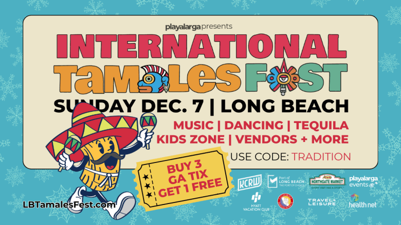 The Long Beach tradition is coming back this holiday season. Playlarga x LB Living hosts the annual International Tamales Festival in downtown Long Beach on Sunday. This beloved event includes live entertainment, a Kids Zone, shopping, a Homemade Tamales Contest, tequila tasting and much more. It’s a delicious celebration of culture and community along 855 Elm Avenue in DTLB. Tickets start at $12.05. 1-7 p.m.