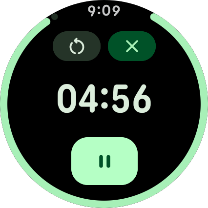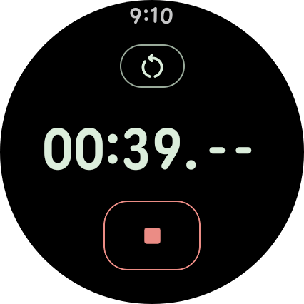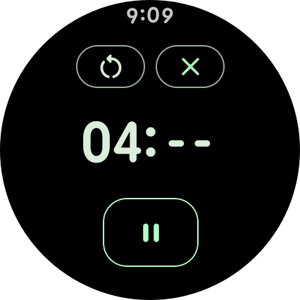 Now, putting your wrist down or having the screen time out when the Timer is active lets you keep using the app. The AOD removes the circular countdown ring. All buttons (restart, end, and pause) get thin outlines that are no longer filled-in, while seconds are replaced by dashes.