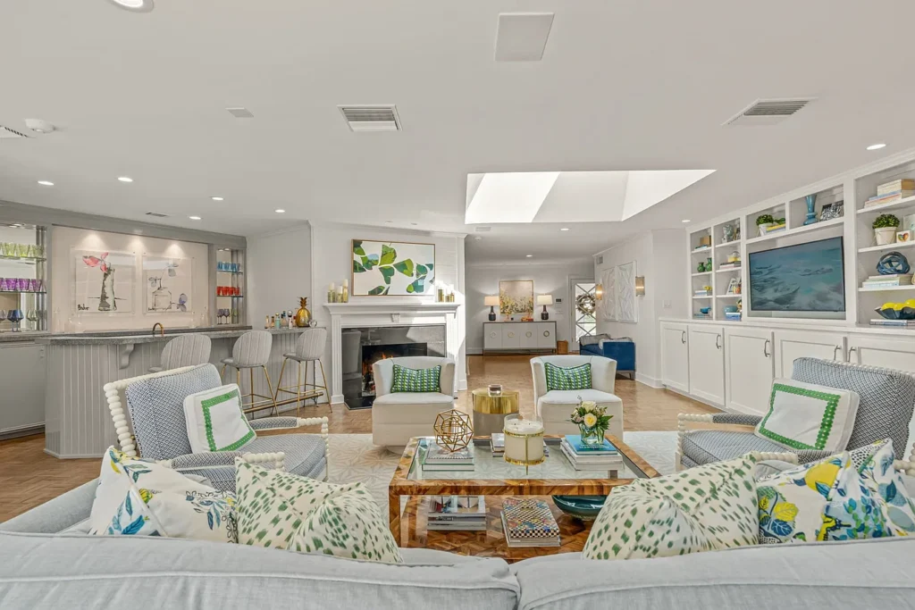 Then, the interior levels up the luxury experience in all aspects. Defined by walls of windows and soaring skylights, this home feels incredibly open in its traditional floor plan. Both formal and family gathering spaces abound, highlighting the expansiveness of this 5,929-square-foot layout. Each of these spaces exudes elegance and indicates superior craftsmanship.