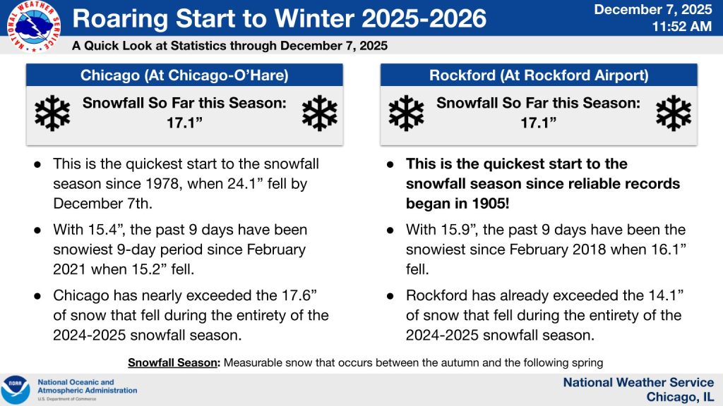 Chicago is breaking snowfall records for the start of the winter season. Credit: National Weather Service