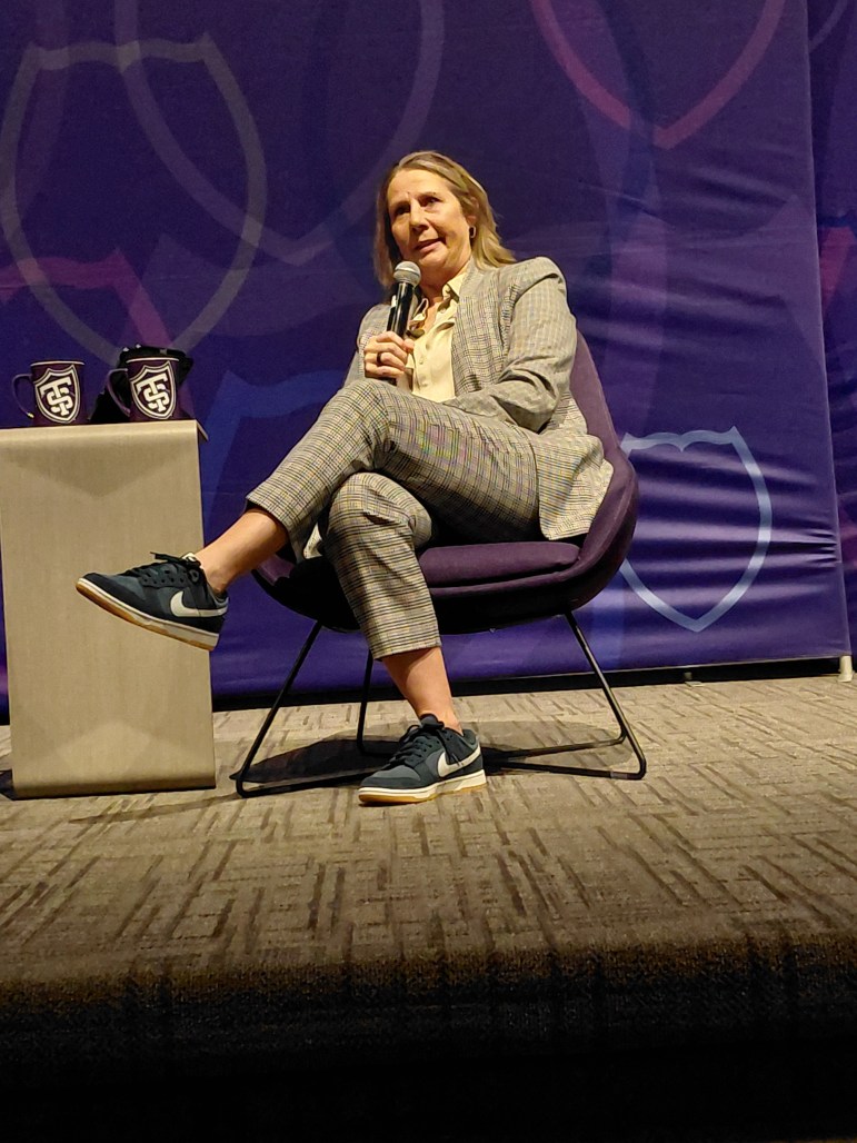 Near the end of the Nov. 24 “Finding Forward” event at St. Thomas, school President Rob Vischer asked Minnesota Lynx Head Coach Cheryl Reeve what women’s sports issues deserved more attention. Her answer was simple: “women coaches.”